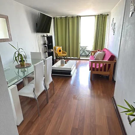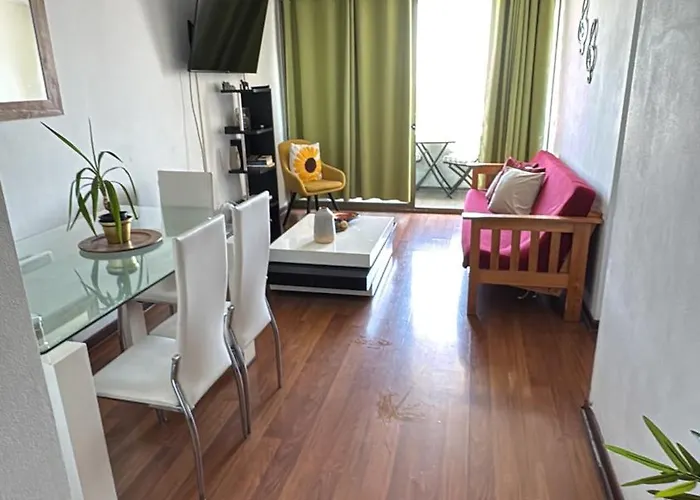 The 60 m² Acogedor Depto Excelente Vista, A/C Apartment includes a terrace and is situated within a 500-metre distance of Tirso Molina Market. Wi-Fi and complimentary private parking are also available at the apartment.